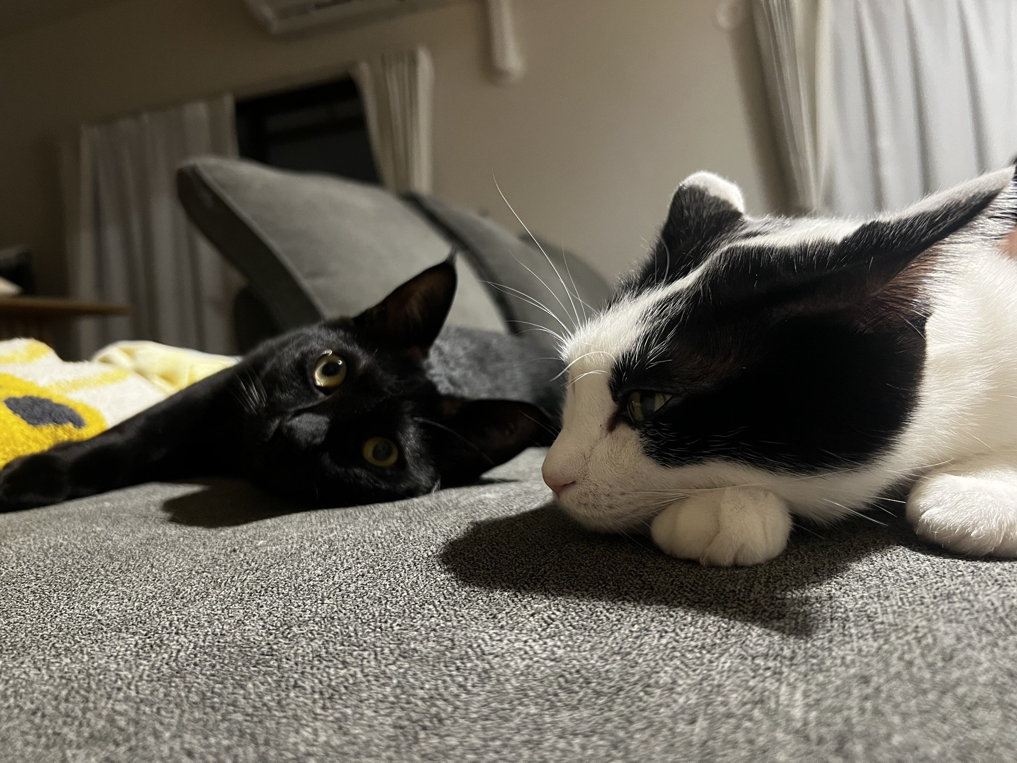黒猫のほうが完全に踏まれてて愛おしいですね